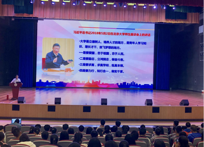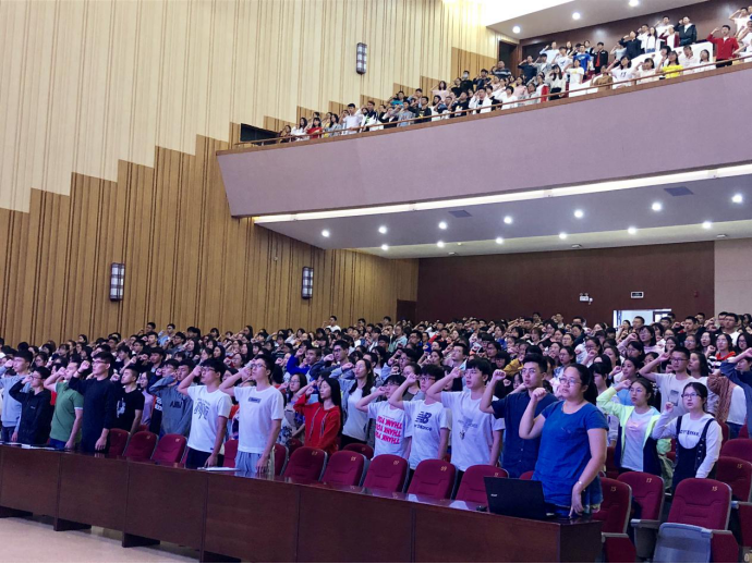 在第一部分的学习中,大家一起回顾了共青团的发展历程、地位、性质、历史作用和任务,共同观看了团十八大视频,增进了对团十八大精神的理解。8000余名新生精神饱满,在主讲人的带领下,重温了入团誓词,洪亮的宣誓声中饱含着作为一名共青团员的光荣与自豪、责任与担当