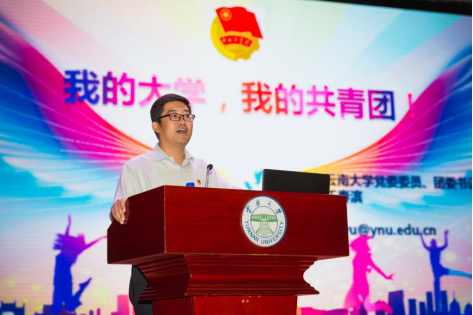 8月25日上午,为深入学习贯彻习近平新时代中国特色社会主义思想和团的十八大精神,结合“青年大学习”行动的开展,团中央候补委员、团云南省委常委、云南大学党委委员、团委书记于春滨为8000余名新入学的团员大学生开讲题为《我的大学,我的共青团》的“开学第一课”主题团课。