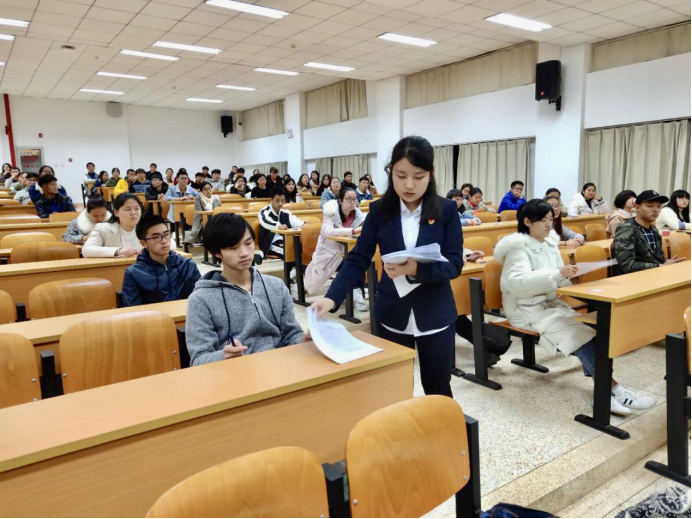 校团委全体干部和各职能部门、各中心全体人员;各院级团组织书记、副书记,各职能部门负责人;2018级、2017级、2016级本科生各班级团支部书记、普通团员代表;2018级全日制硕士研究生各班级团支部书记、团员代表;各校级学生组织主席团成员、各部门学生骨干近1000人参加考试。