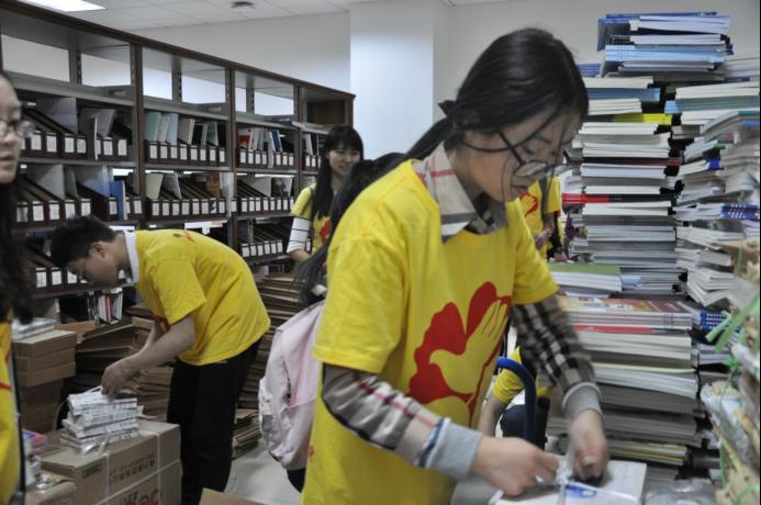 志愿者们走进食堂,协助食堂工作人员进行卫生清洁;走进图书馆,对报纸杂志进行分类整理;走进宿舍园区,协助宿舍走廊和安全通道检查工作;来到泽胡,擦拭供师生休憩的石桌石凳,清理草坪上“卫生死角”的垃圾。