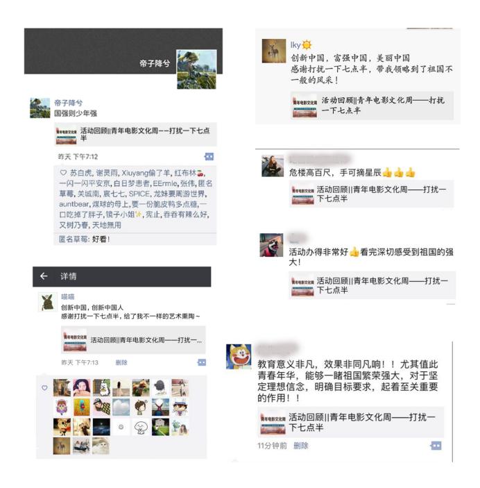 观影期间,同学们聚精会神,为祖国的科技创新成就深感震撼,深刻体会到建设创新中国肩负在新时代大学生身上的历史使命和责任担当。同学们纷纷表示“打扰一下19:30”青年影视文化周,片源新颖、主题宏大、内容震撼、内涵深刻,是同学们喜闻乐见的思政教育学习平台。