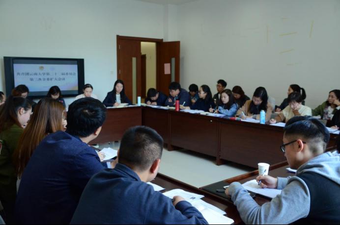 3月29日,共青团云南大学第二十二届委员会第三次全委扩大会议在云南大学学生会堂216会议室召开。共青团云南大学第二十二届委员会全体委员、各学院(研究院)团委(团总支)书记参加会议。团委李娅佳副书记主持会议。
