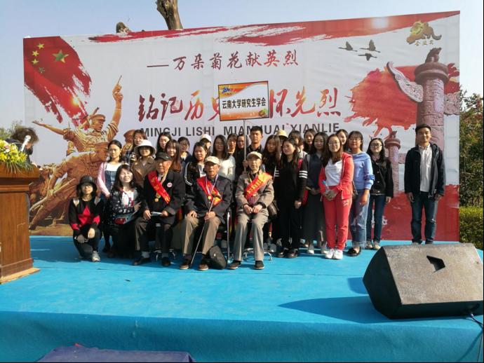 云南大学研究生会组织50余名同学参加由云南老兵关怀计划办主办的“万朵菊花献英烈——昆明金陵园扫墓”活动,缅怀抗日战争时期牺牲的中国远征军将士,向英雄们表达追思和敬仰。