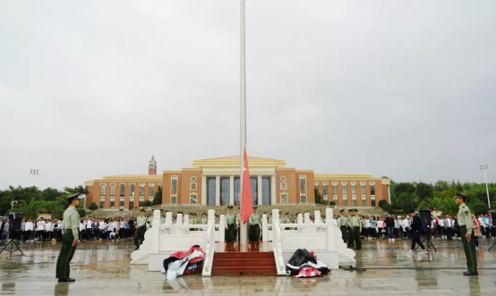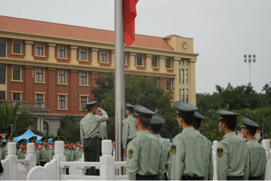 伴随着云南大学16级武警国防生铿锵有力的脚步和庄严嘹亮的国歌,五星红旗缓缓升起,迎风飘扬。