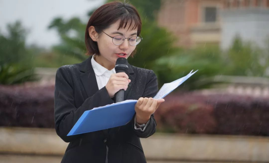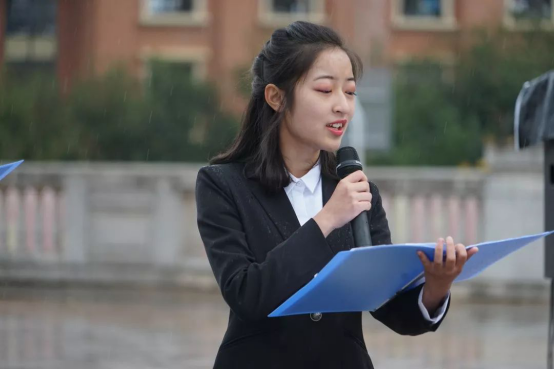 今天是我们伟大祖国的生日,云大青年们站在了这里。我们身处于一个伟大的新时代,与我们的父辈相比、与那些已经失去了生命的革命先辈相比,我们这一代人是幸福的。在一代代先辈的努力下,我们成为了距离实现中华民族伟大复兴的中国梦最近的一批人。听从时代的呼唤、响应祖国的号召,我们今天来到这里,向我们的祖国告白。我们是新时代的云大青年,我们最美的青春应该在实现中华民族伟大复兴的中国梦中奋斗,我们最美的芳华应该在云南大学“双一流”建设中绽放。那么多美好的梦想,那么多个人的努力,像这滴落的雨水一样,于此刻、于此地汇聚成河,一同歌颂伟大祖国的生日。
