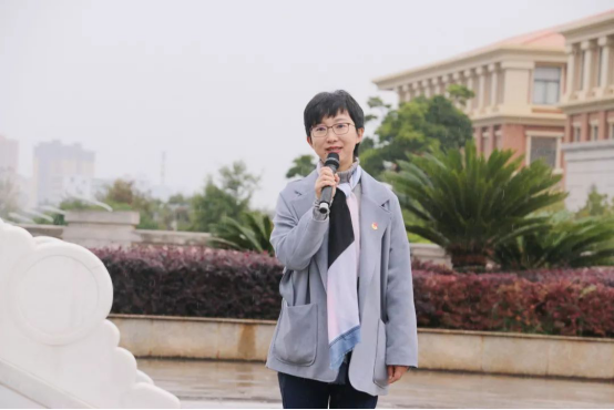 在升旗仪式中,云南大学团委副书记陈芳发表讲话。