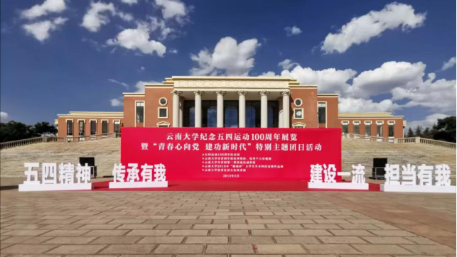 云南大学纪念五四运动100周年展暨“青春心向党 建功新时代”特别主题团日活动旨在深入学习贯彻习近平总书记在纪念五四运动100周年大会上的重要讲话精神,传承五四精神,凝聚广大青年同学,用自己的青春和奋斗,为自身的成长成才,为学校建设一流大学,为实现中华民族伟大复兴中国梦做出新的贡献。据悉,展览将持续一周时间。