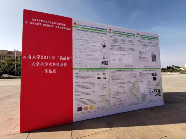 云南大学2019年“挑战杯”大学生学术科技竞赛作品展展示我校148件“挑战杯”学生课外学术科技作品竞赛申报作品。经个人申报、学院学术委员会或教授委员会评审同意等环节,理科组共有71件作品进行展示,其中自然科学类学术论文31件、科技发明制作A类20件、科技发明制作B类20件;文科组社会调查报告和学术论文77件。