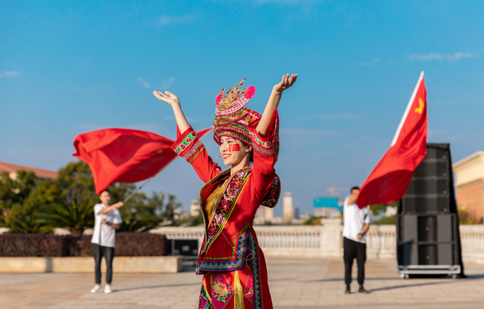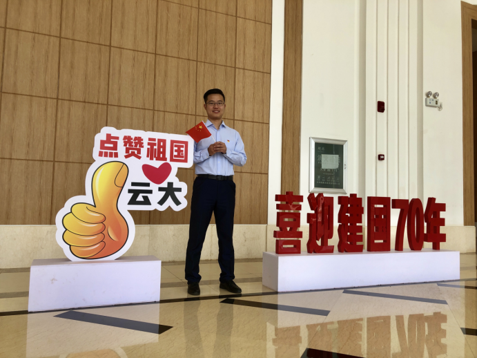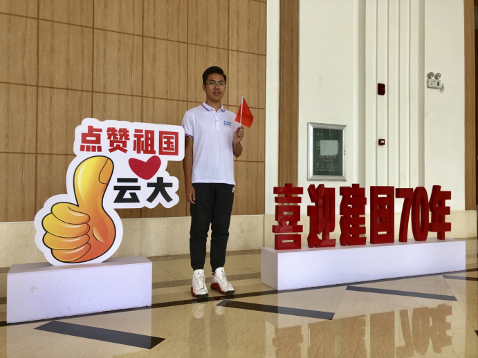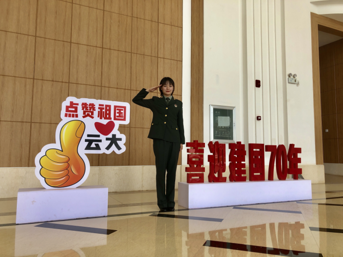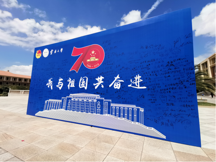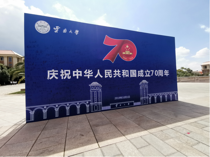 为庆祝中华人民共和国成立70周年,激励和引导广大师生大力弘扬爱国奋斗精神,全力推进学校“双一流”建设,10月1日上午8:00,云南大学举行庆祝中华人民共和国成立70周年主题活动。活动分为两个阶段,第一阶段为升国旗仪式,第二阶段为集体观看庆祝中华人民共和国成立70周年大会和阅兵式直播。