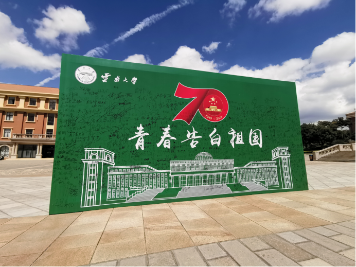 70年来,在中国共产党的正确领导下,全国各族人民团结一心,迎难而上,开拓进取,奋斗前行,使中国从封闭落后迈向开放进步,从温饱不足迈向全面小康,从积贫积弱迈向繁荣富强,迎来了从站起来、富起来到强起来的伟大飞跃,创造了一个又一个人类发展史上的伟大奇迹,走出了一条民族复兴强国富民的康庄大道。习近平总书记指出,青年最具有朝气,最富有梦想,青年兴则国家兴,青年强则国家强。在中华人民共和国成立70周年之际,云大青年齐聚在国旗下,在新时代向伟大祖国深情告白,是一次生动的思想政治教育课,是一次号召云大青年学子珍惜韶华、爱国奋斗的爱国主义沉浸式主题教育,旨在号召云大青年学子与祖国共奋进,做时代追梦人,为云南大学“一流大学”建设,为实现“两个一百年”奋斗目标、实现中华民族伟大复兴的中国梦贡献青春力量。