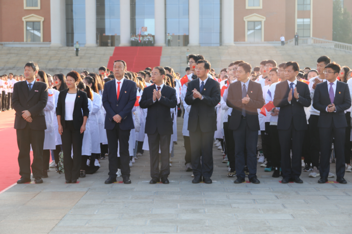 校党委书记林文勋,校长方精云,校党委副书记李建宇、陈华仙,副校长杨泽宇、刘晓江、张力、丁中涛、赵琦华、李晨阳、刘波出席升旗仪式。学校相关部门领导、校团委全体同志、各学院团委书记、辅导员和近3000余名师生代表和新闻媒体参加升旗仪式。升旗仪式由校党委委员、团委书记于春滨主持。