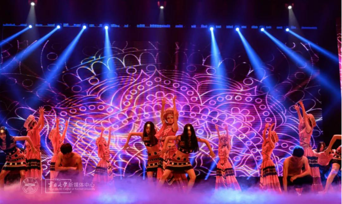 在云南这片我国少数民族最多的土地上,得天独厚的自然环境孕育出了少数民族独特的文化艺术。在这里,25个世居少数民族能歌善舞,用歌声传递美好,用舞蹈赞美生活。节目中,校学生艺术团和艺术与设计学院的同学们用串烧的形式把风格不一的云南少数民族舞蹈串联在一起,燃情展示了云南少数民族的原生舞姿和精美服饰,诠释了云南少数民族团结奋进新时代的美好寓意。