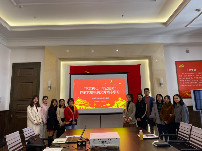 在深入学习贯彻党的十九届四中全会精神和深入开展“不忘初心、牢记使命”主题教育之际,11月28日,共青团云南大学机关支部在机关党员活动室(明远楼522)开展主题团日活动。此次团日活动的主题是“不忘初心、牢记使命——向时代楷模黄文秀同志学习”。团支部书记代悦棋主持活动。