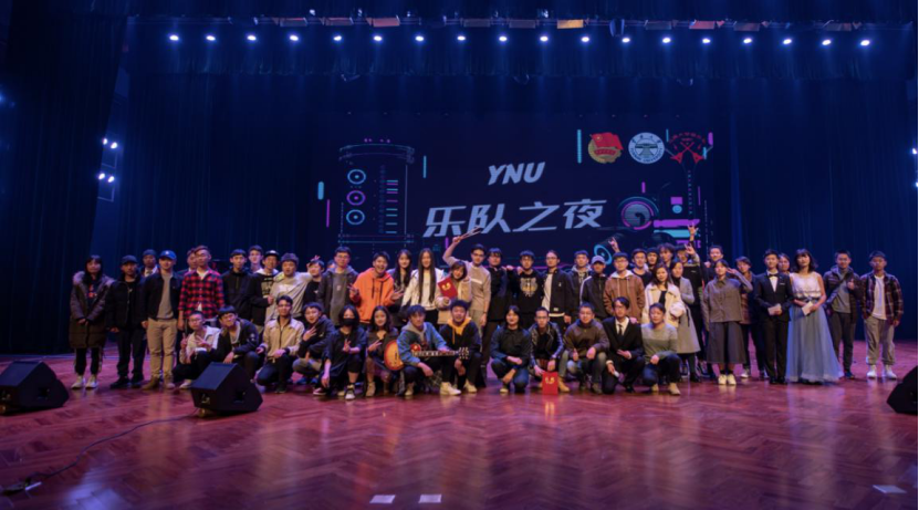 2019年12月16日晚,由校团委社团部主办,音乐社承办的学生社团立项活动云南大学“YNU乐队之夜”校园乐队大赛在呈贡校区学生会堂顺利举办。来自全校不同学院不同专业的多支乐队激情演奏15首曲目,最终“东二公园”乐队获比赛一等奖。