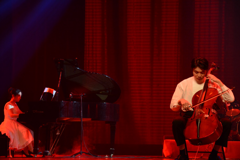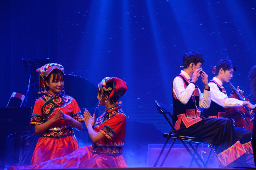 极具云南民族特色的曲目过后,西方音乐串烧《影音风暴》和《青城山下白素贞》两个创新编排、独具匠心的节目上演。在《影音风暴》中,芭蕾舞轻轻点缀着电影《爱乐之城》的原声歌曲《City of Stars》和《加勒比海盗》的主题曲《He’s a Private》的串联,仿佛让观众置身在优美的梦境之中。《青城山下白素贞》将民乐、钢琴、打击乐、声乐、爵士相融合,通过唱演弹奏,将传统文化焕发出新的活力与精彩,给观众呈现了清雅又动感的纯美画面。