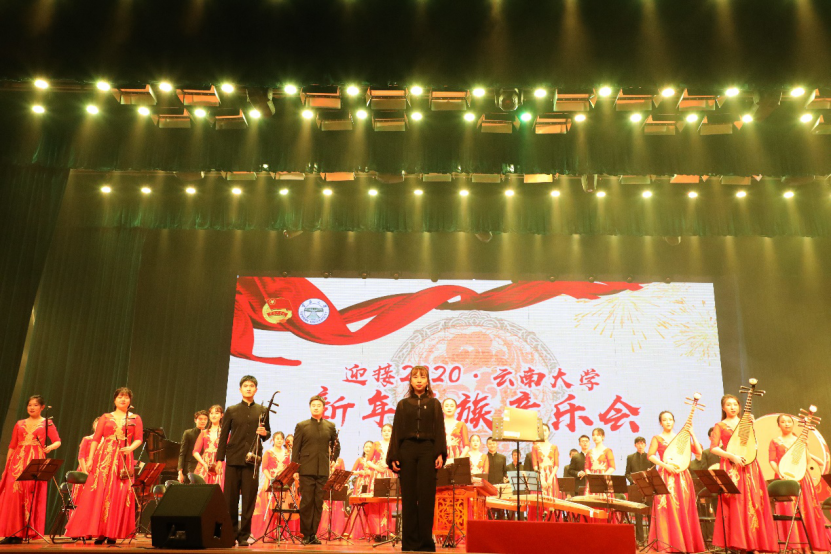 12月12日晚,迎接2020·云南大学新年民族音乐会在云大会堂礼堂举行。1200余师生代表观看音乐会,在聆听美妙的音符中共盼新年的到来。