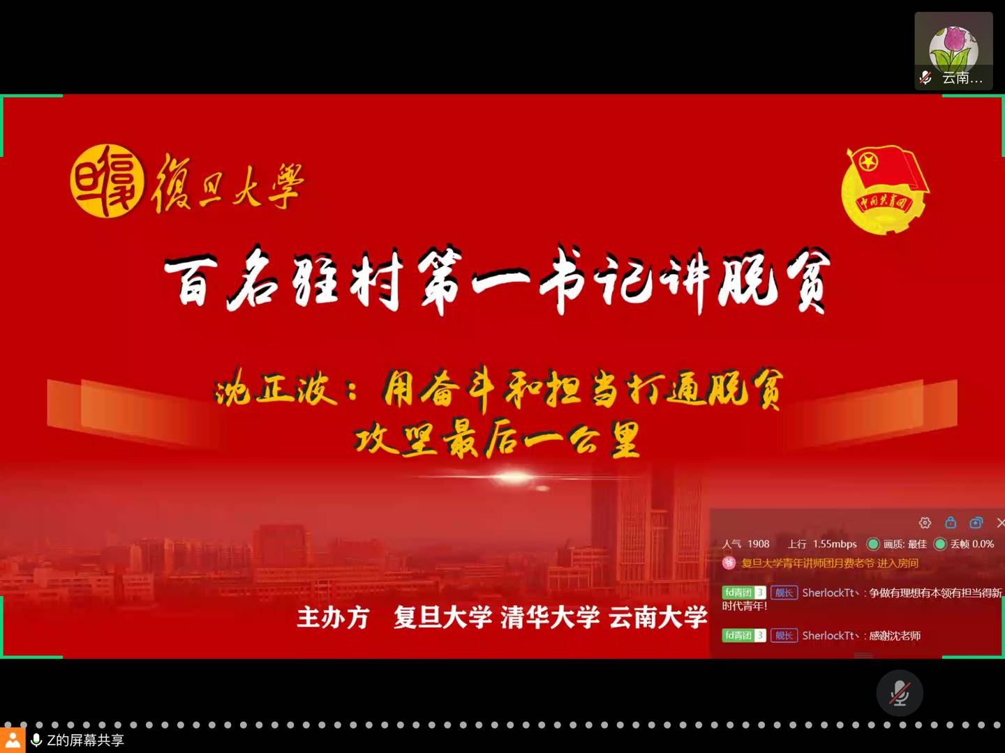 “青春由磨砺而出彩,人生因奋斗而升华”。5月12日,清华大学、复旦大学、云南大学三家高校团委联合开展支部共建学习活动。我校研究生支教团成员、“五四红旗团支部”2017级高分子材料与工程团支部和2017级新闻学团支部的团员青年与清华大学、复旦大学同学们相聚云端,共话脱贫。