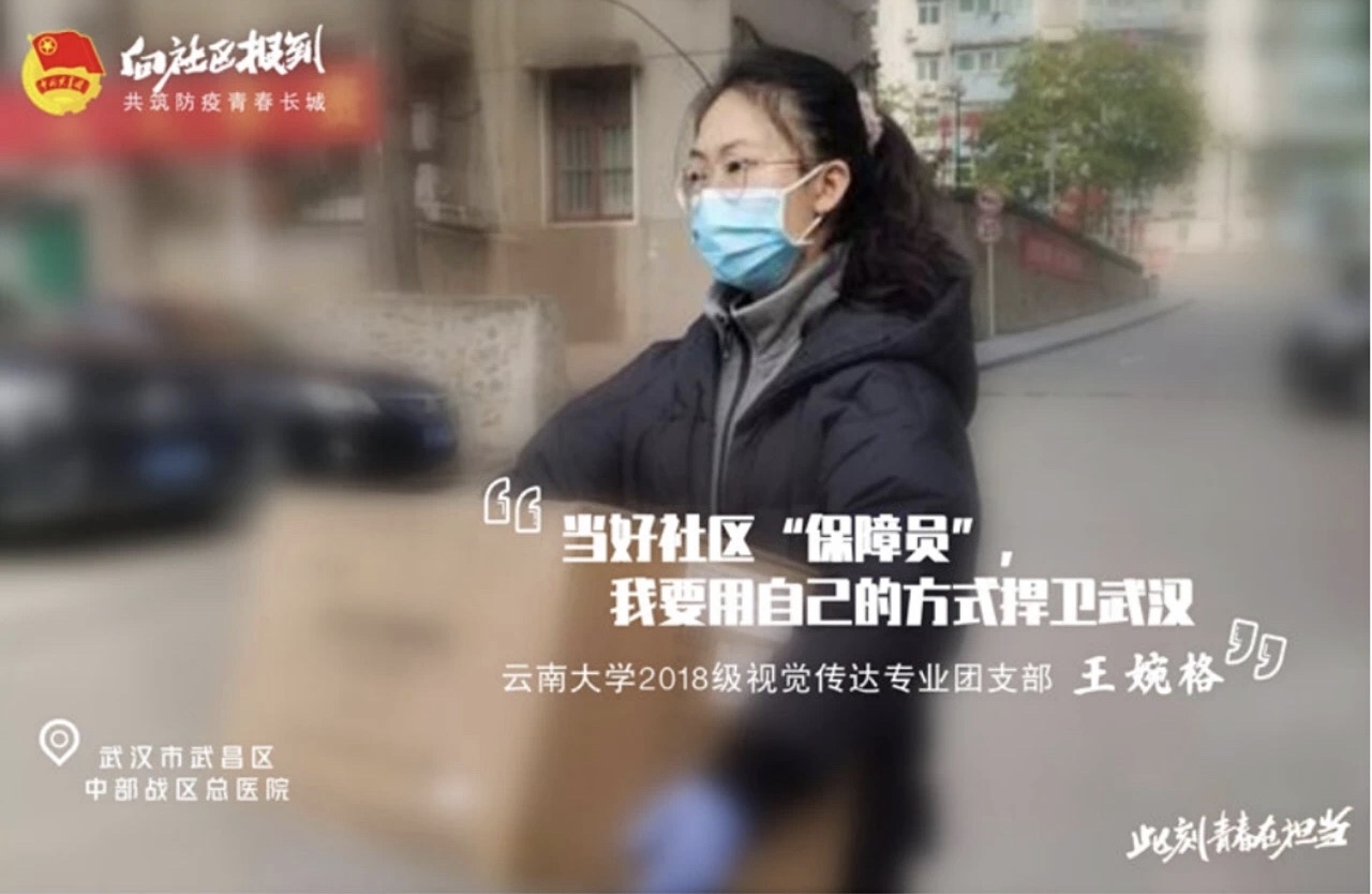 他们中,有的义无反顾守初心,加入武汉疫区防控第一线,参与物资协调联络、统计分发等工作;有的甘当基层抗“疫”的螺丝钉,坚守在家乡社区(村),参与人口排查、卡点管控、体温检测等工作。有的听从指挥服从安排,几经辗转服务多个岗位,用实际行动筑牢抗疫防线。有的立足专业技能,参与心理疏导,守护战“疫”后方,为无数家庭带去实实在在的温暖。有的奉献爱心,用绵薄之力感恩逆行者的负重前行。有的迎难而上,参与防护物资生产一线,填补战“疫”缺口,让青春尽力而为。