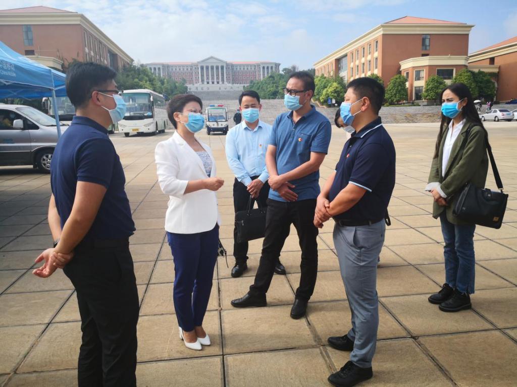 5月18日,共青团云南省委赵攀峰副书记一行到云南大学呈贡校区就学生返校情况和疫情防控志愿服务工作进行实地调研,校党委副书记陈华仙出席调研活动。团省委学校部、校团委有关同志陪同调研。