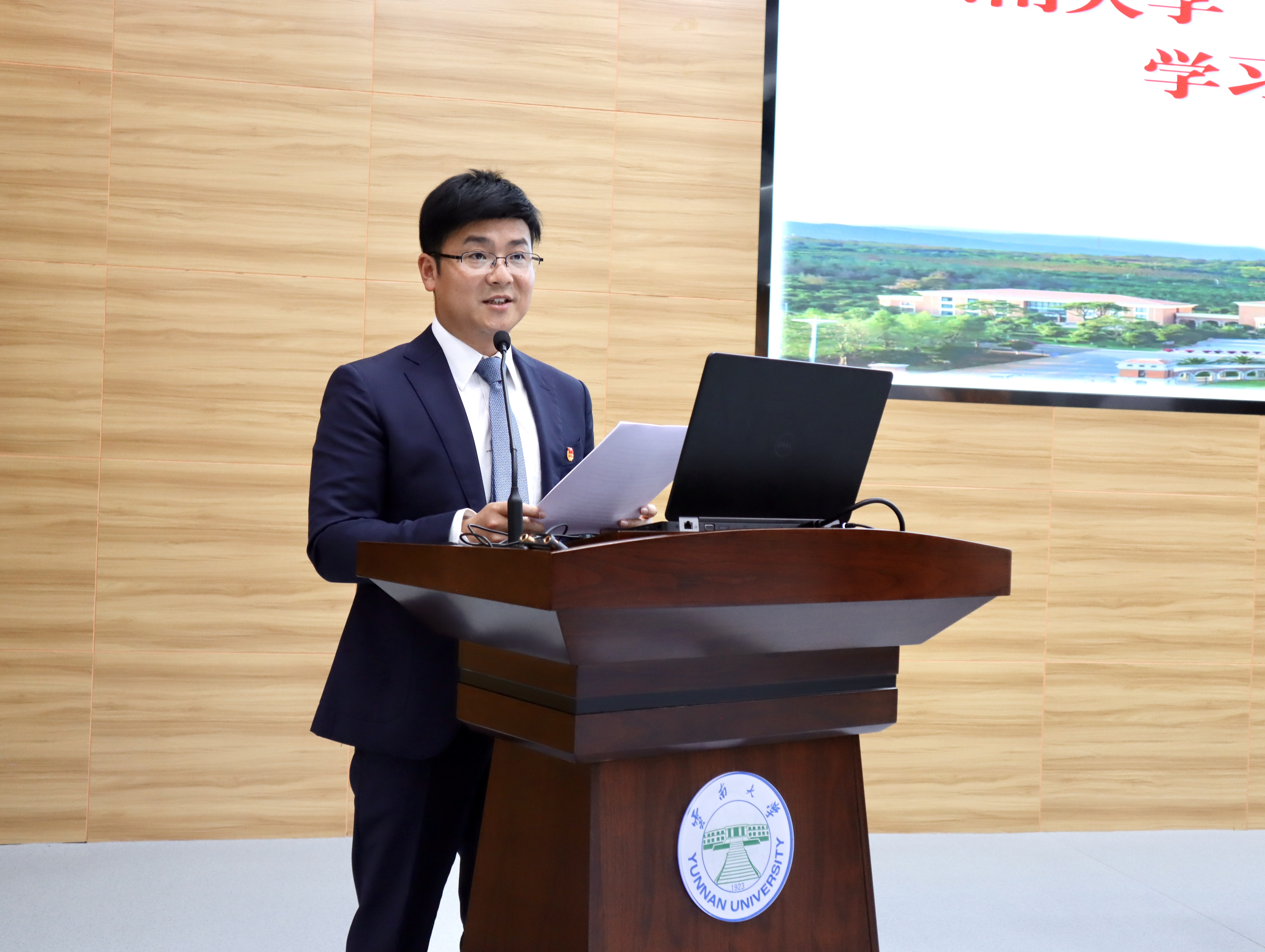 学生工作部张岳部长宣读《云南大学共青团关于表彰2021年“五四”先进集体和个人的决定》。