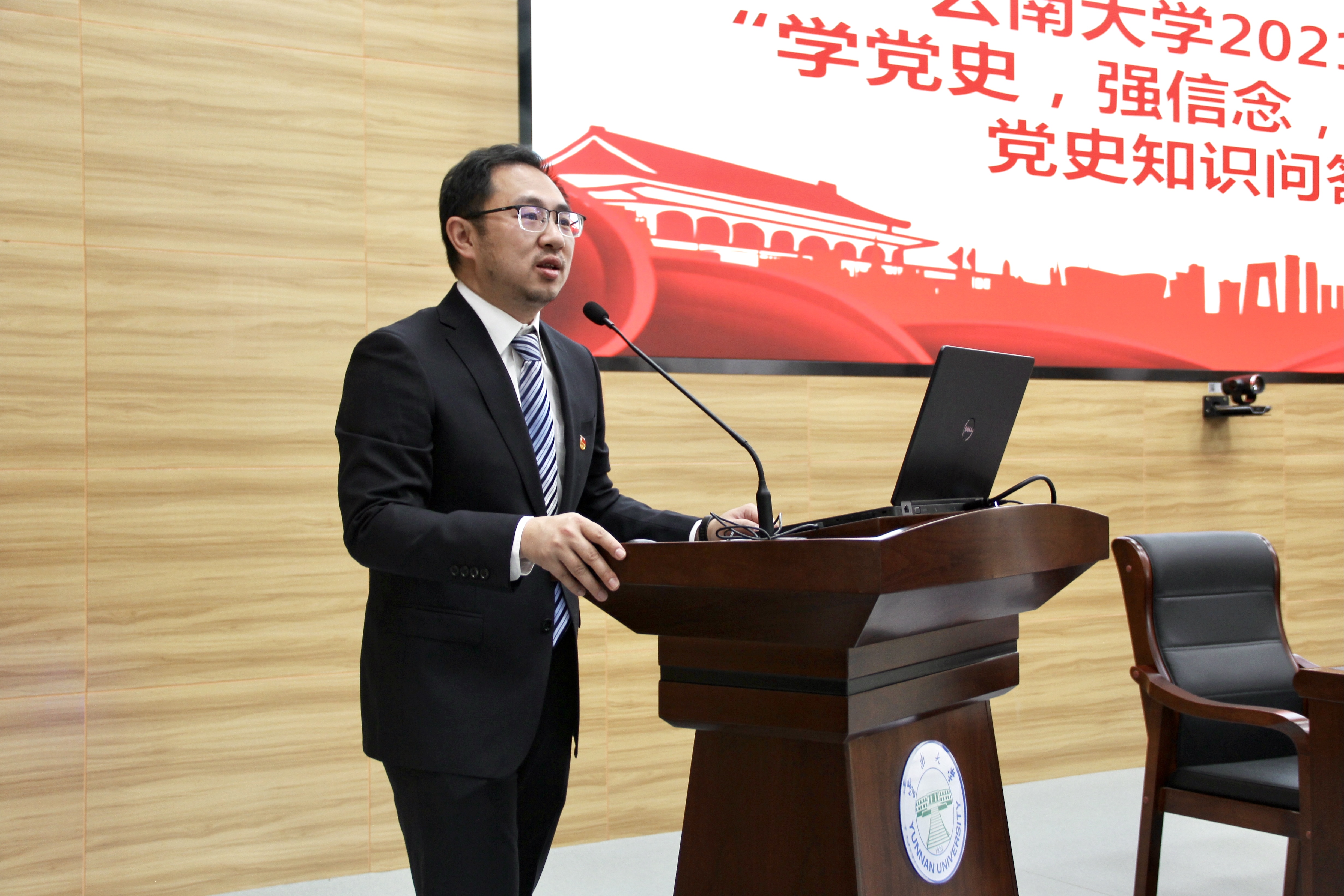 校团委郑茗戈书记主持会议。他在总结会议中简要回顾了云南大学共青团过去一年的工作。学校团学系统围绕思想引领、组织提升、素质拓展、权益维护开展工作,获得挑战杯等国家级以上表彰奖励12项,《中青报》《中国共青团》《中国研究生》杂志9次刊发宣介云大学生会改革、爱国主义教育、研究生支教团工作。在刚刚公示的国家、云南五四奖章评选中,学校1个青年科研团队、1位青年教师获中国青年五四奖章(集体、个人)提名,1个科研团队、1位青年教师入围云南青年五四奖章,再创新高。这些成绩的取得,离不开学校党委行政的坚强领导,离不开各院、各部门各单位的大力支持,更离不开基层团组织和团员青年们的不懈努力。云大团团将继续努力,不断前行。今天的会议,大家一起学习党史,表彰先进,在共同学习中,汲取党的历史蕴含的磅礴伟力,在表彰先进中,坚定向榜样看齐的前行步伐。希望各位团员同学牢记习近平总书记在清华大学考察时的嘱托,在攀登知识高峰中追求卓越,在肩负时代重任时行胜于言,在“真刀真枪”的实干中成就一番事业。希望同学们在校期间努力学习,提升自我,追求卓越,踏入社会不负时代,勇担使命,成就辉煌。