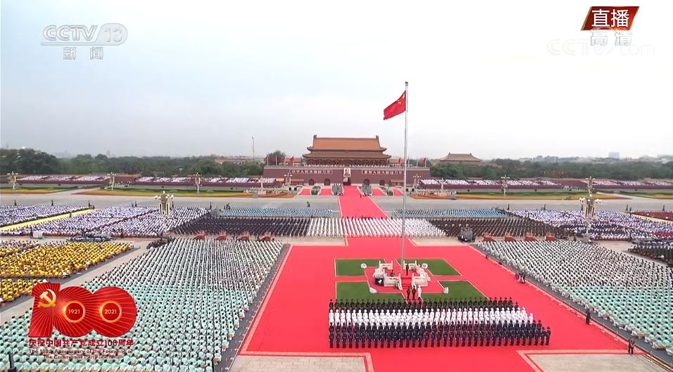7月1日上午8时,庆祝中国共产党成立100周年大会在北京天安门广场隆重举行。中共中央总书记、国家主席、中央军委主席习近平出席并发表重要讲话。