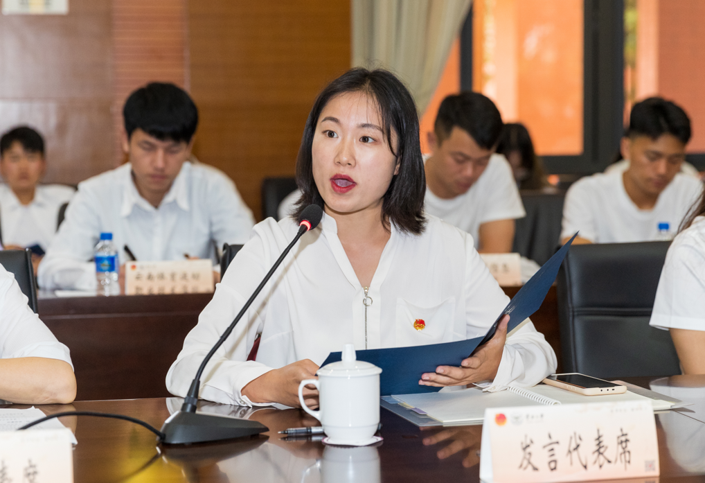 本次座谈会,一共有8家在昆高校、职业院校、中学的团组织负责人、辅导员代表和学生代表结合学校开展工作实际和对习近平总书记在庆祝中国共产党成立100周年大会上的重要讲话精神的理解和感受做了交流分享,纷纷表示将在工作中牢记习近平总书记在大会上对青年一代的谆谆嘱托,不负时代,不负韶华,不负党和人民的殷切期望!请党放心,强国有我!