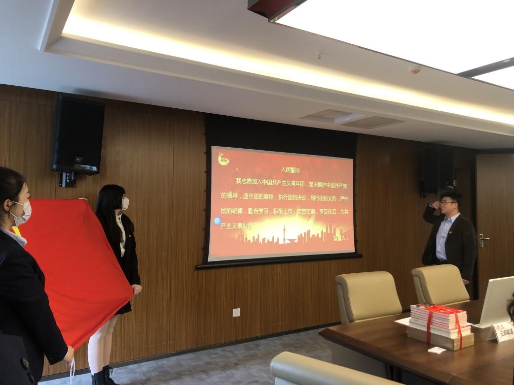 主题团日活动中,在座青年团员齐唱中国共青团团歌,共同重温入团誓词,用铿锵的誓言表达自己“永远跟党走、奋进新征程”的坚定信念。
