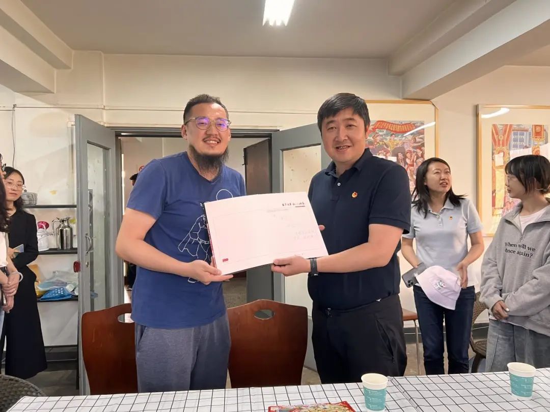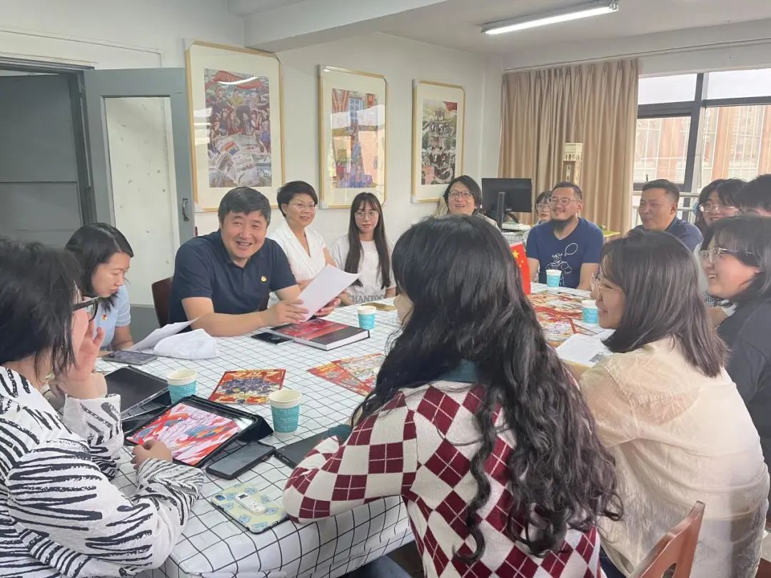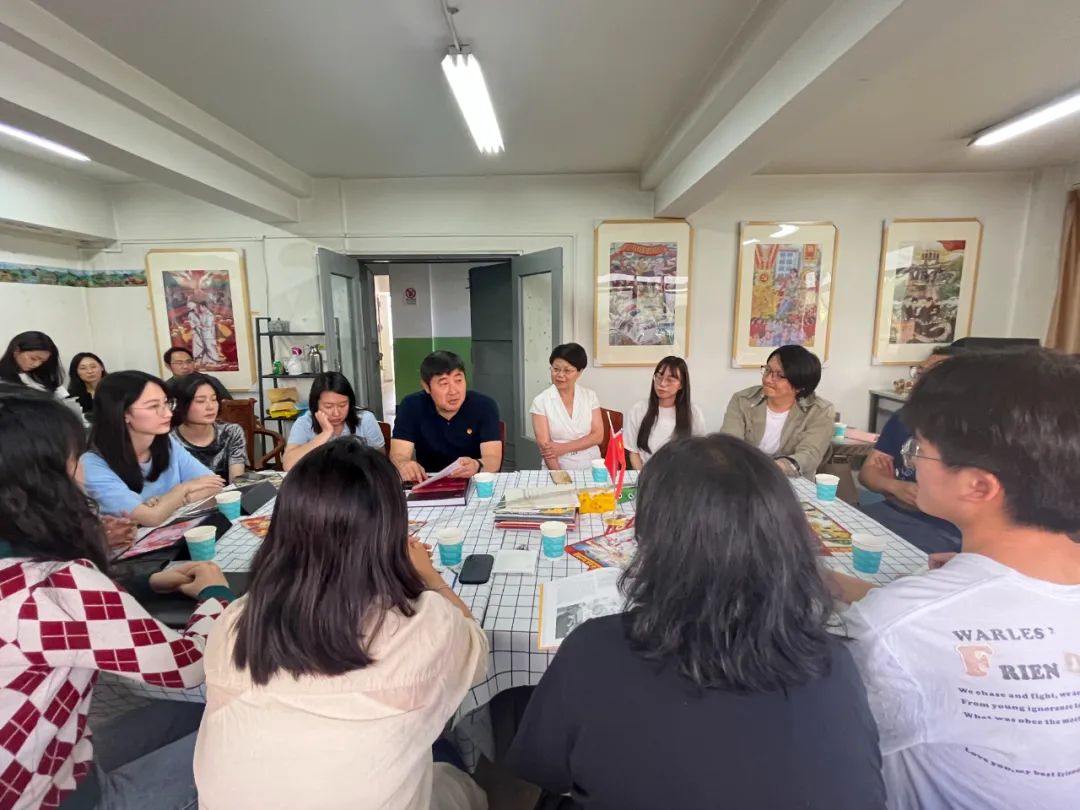 唐源书记对工作室团队的努力与付出表示了高度的肯定和赞赏,他指出,主题展已经成为了具有团青特色、深受青少年喜爱的红色“打卡地”,得到了省委领导和社会各界的一致好评,取得了较好的效果。他强调,在庆祝中国共产主义青年团成立100周年大会上,习近平总书记从赓续5000多年的中华民族青春力量、绵延百余年的中华民族伟大复兴进程出发,回顾了共青团由党缔造、与党同心、跟党奋斗的百年历程。这段百年的光辉历史在同学们的画笔下跃然纸上,让党的青年运动史更加生动地展现在新时代青年的面前,吸引了更多的青年了解历史,回望百年,展望复兴。唐源书记勉励同学们要坚定艺术报国的初心使命,向国家优秀的前辈艺术家们学习,厚植家国情怀,培育更多艺术精品。
