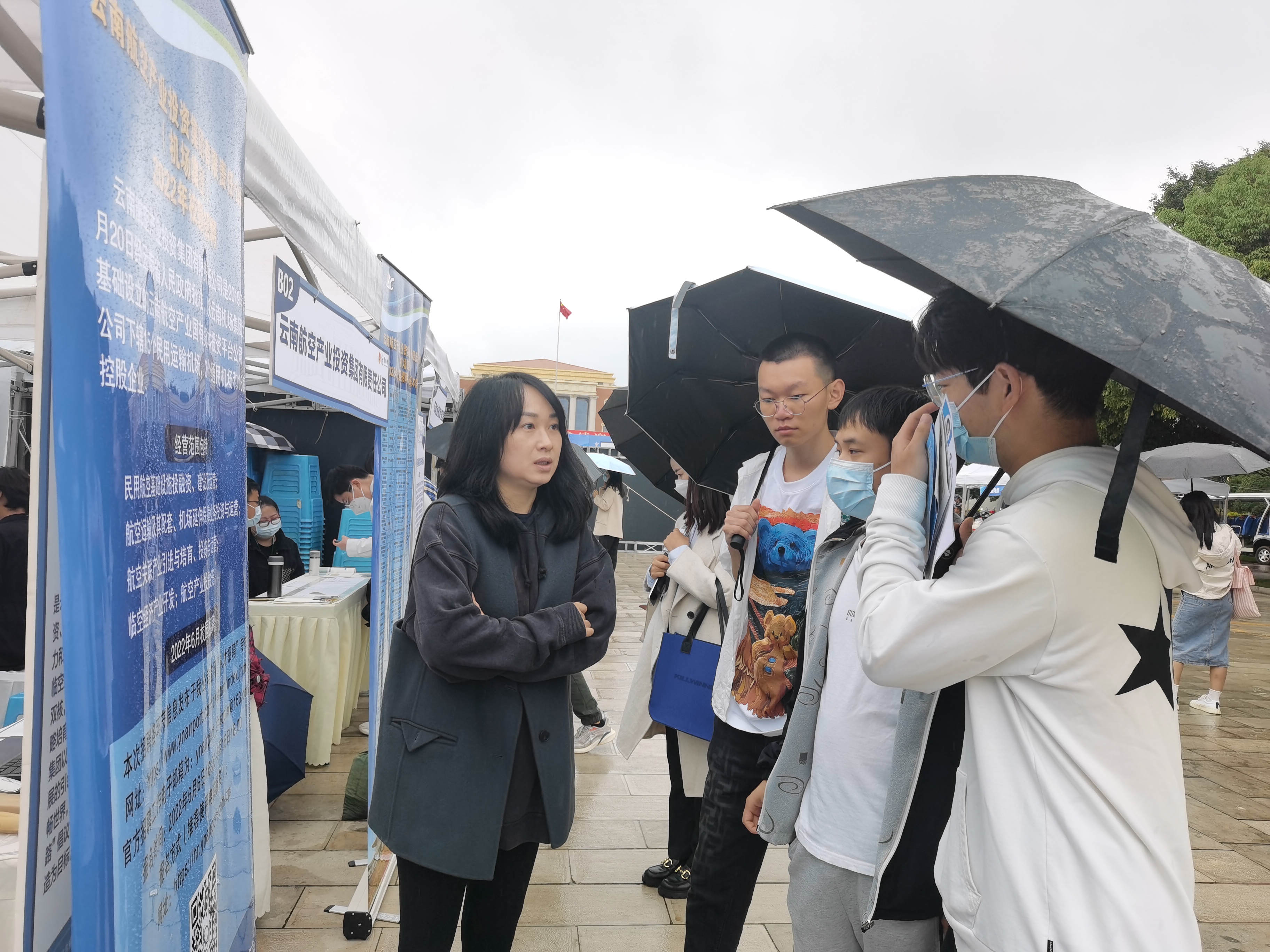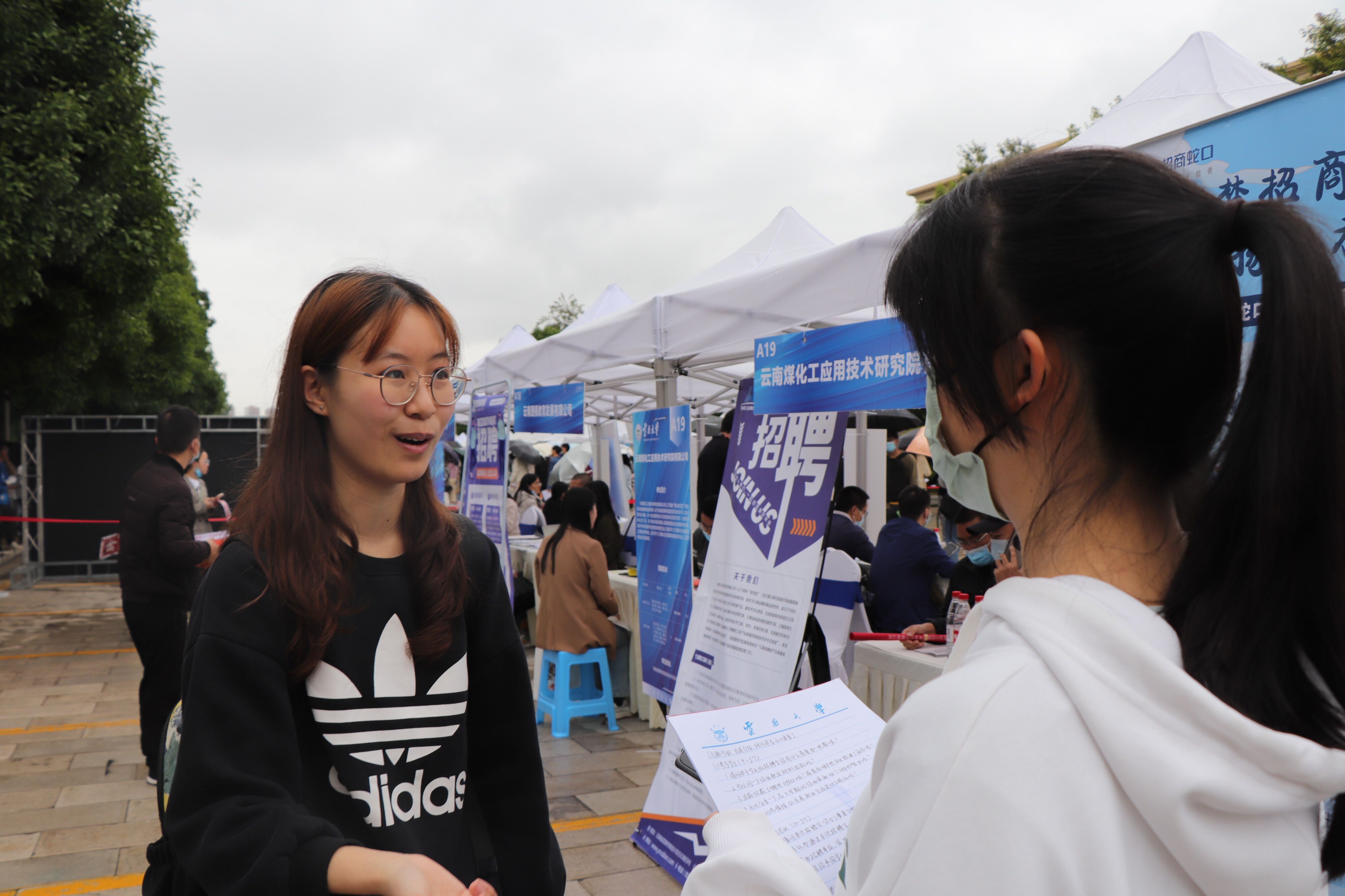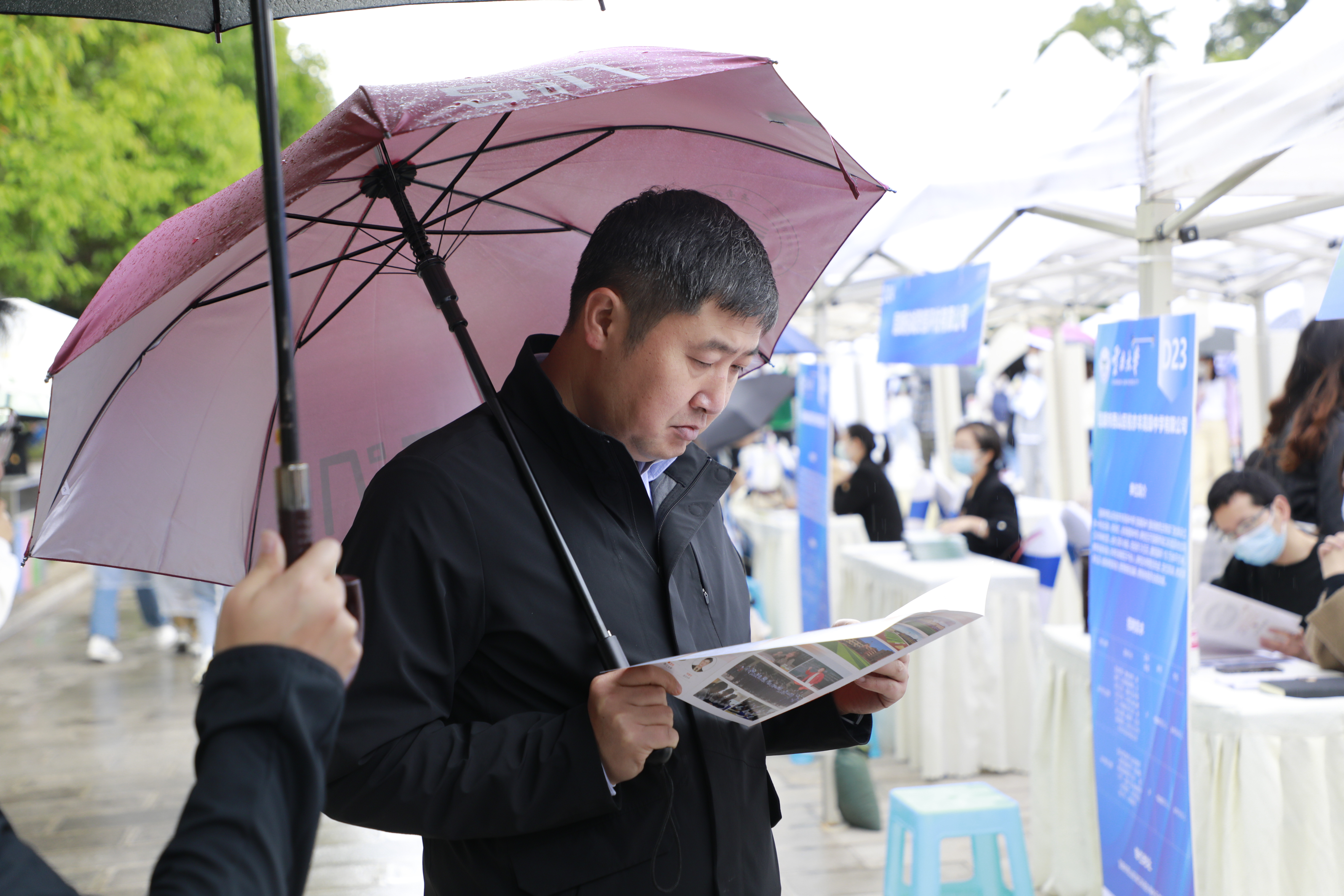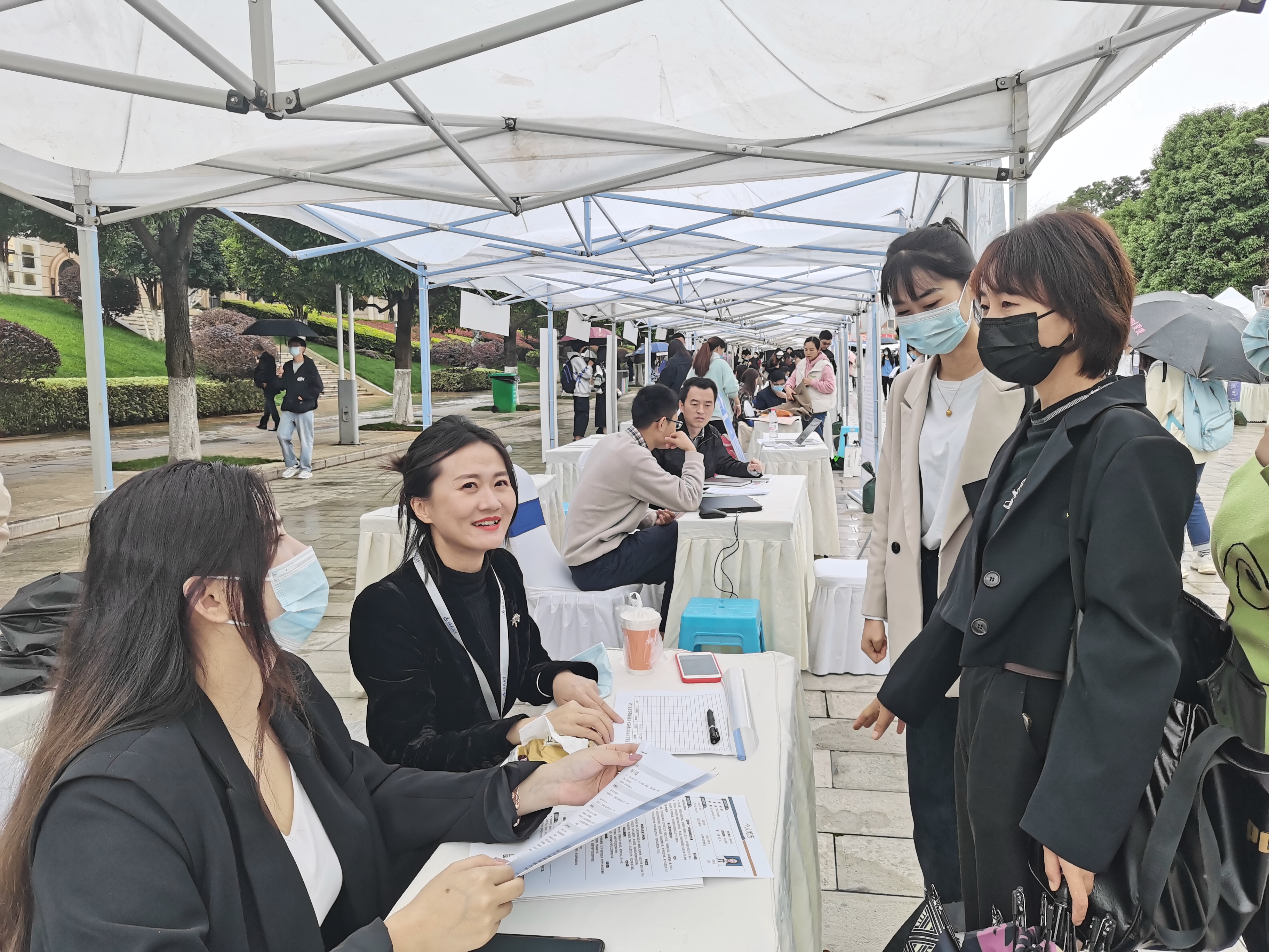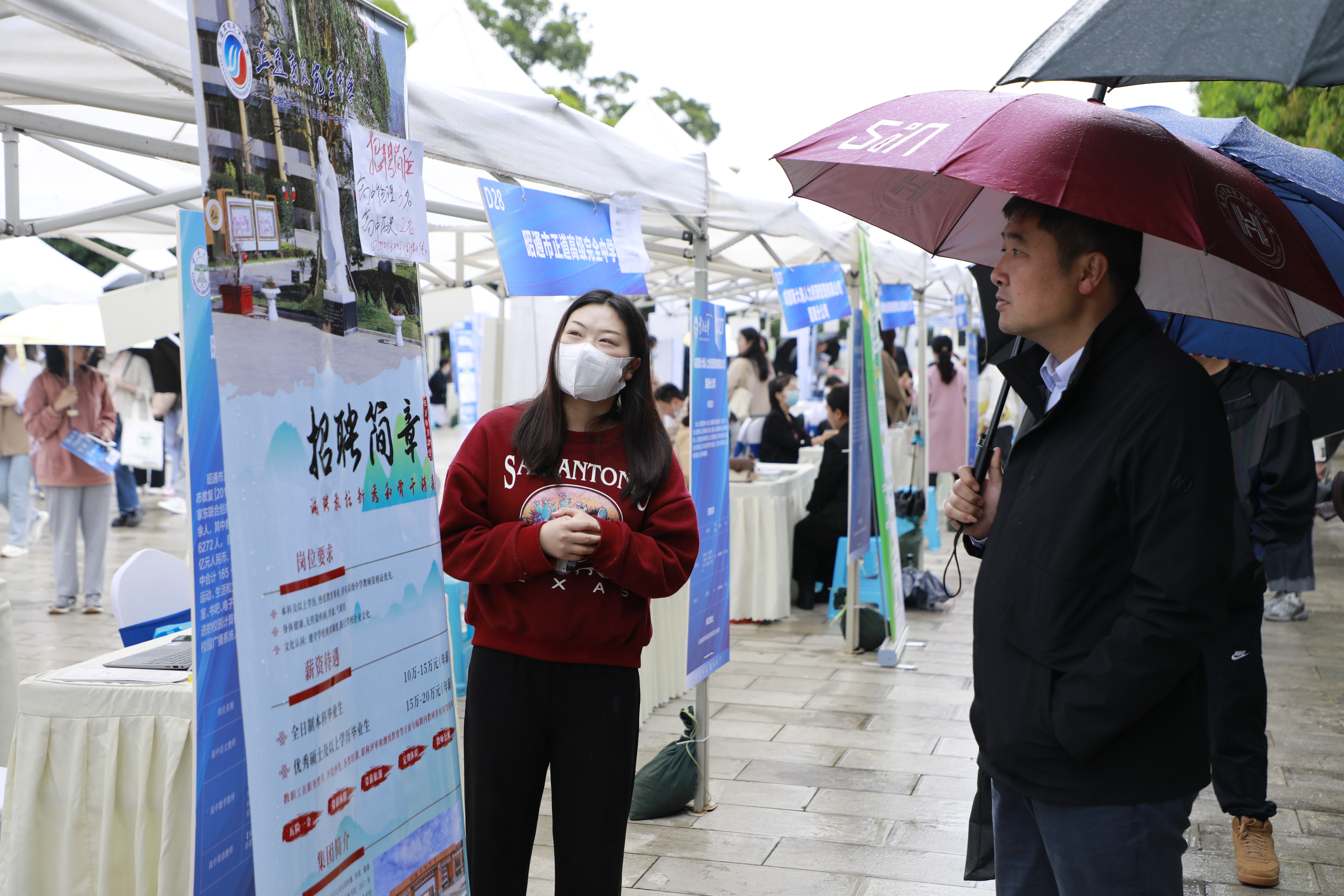 来自多个地区的企事业单位参加了招聘活动。本次双选会有注册地为北京、上海、广东、四川、重庆、福建、广西、河南和云南等9个省市的127家优质单位到场招聘,提供岗位4330个,平均月薪6800元,涉及教育、科学研究、制造业、金融业和技术服务业等16个行业。天雨微凉,但同学们的热情很高,大家撑着雨伞、戴着口罩,在双选会入口处有序排队,扫码入场。