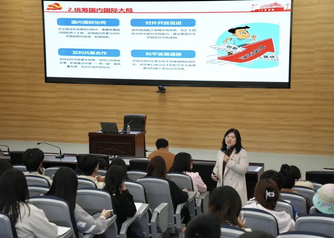 做好党的创新理论阐释工作。成立“习近平新时代中国特色社会主义思想学习社”,由学生会执行主席担任社长,联合学校“青年讲师团”,聚焦党的创新理论及《习近平与大学生朋友们》等著作,组织开展专家解读、骨干讲读、实践研读等读书交流学习活动。