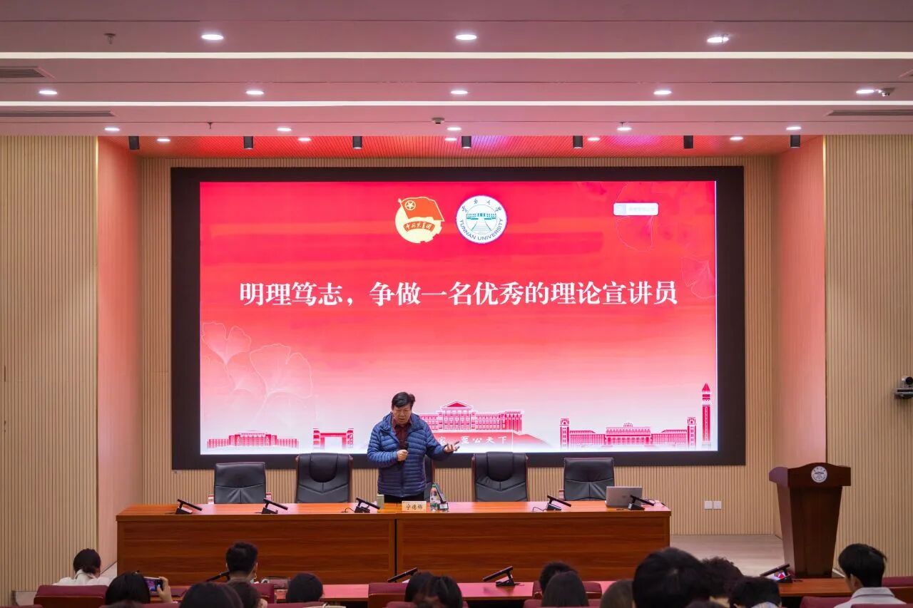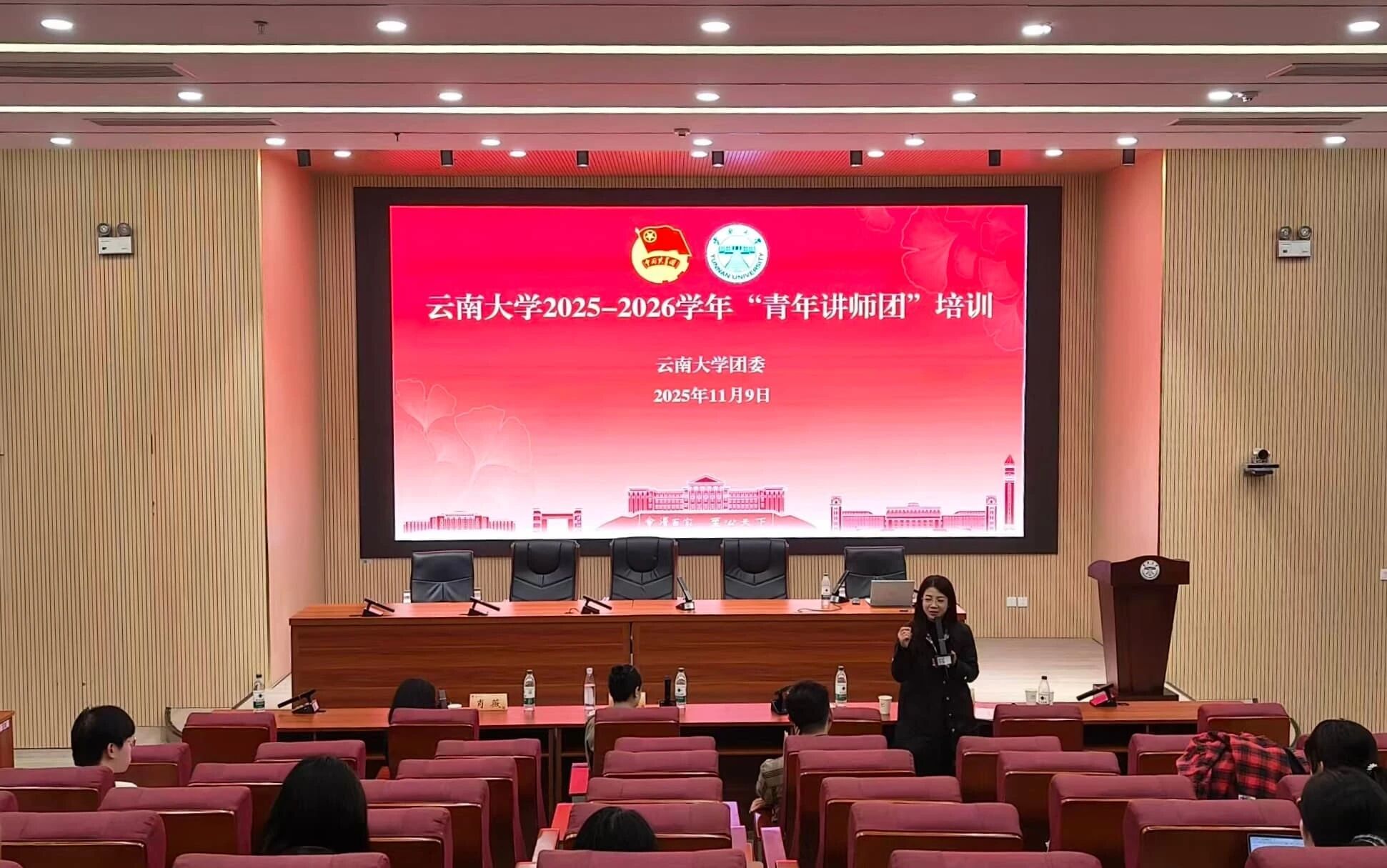为深入学习贯彻习近平新时代中国特色社会主义思想、党的二十届四中全会精神、习近平总书记考察云南重要讲话精神、习近平总书记致云南大学建校100周年重要贺信精神,落实立德树人根本任务,推动党的创新理论青年化阐释,进一步推进学校“青年讲师团”宣讲实效与能力提升,汇聚青年师生力量共建学校“大思政”工作格局。近日,云南大学2025-2026学年“青年讲师团”培训在呈贡校区校史馆301报告厅举行。