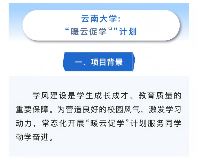 为营造勤学奋进的校园风气,云南大学常态化开展“暖云促学”计划,围绕考研帮扶、科研训练与学术视野拓展,搭建起覆盖全面、精准高效的支持体系。
