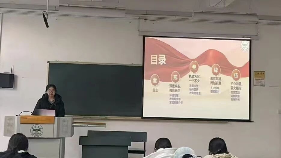 为深入贯彻党的二十届四中全会关于“教育、科技、人才一体化发展”的战略部署,聚焦教育公平与民族地区振兴,2025年12月14日,文学院举办了以“两山一江,跨越千年——独龙族的教育振兴路”为主题的主题宣讲会。郑诗影同学紧扣全会精神,系统解读了独龙族作为“直过民族”从原始社会到社会主义社会的历史性跨越,以及教育在推动整族发展中的核心作用。通过回顾独龙族教育从无到有、从政策扶持全覆盖到赋能个人与整族振兴的历程,生动诠释了国家教育战略在民族地区的实践成效。宣讲会不仅深化了青年学子对教育振兴和民族团结的认识,更激发大家从独龙族奇迹中汲取力量,坚定“感党恩、听党话、跟党走”的信念,号召青年以教育为桥梁积极参与民族地区建设,为新时代民族团结进步事业贡献青春力量。