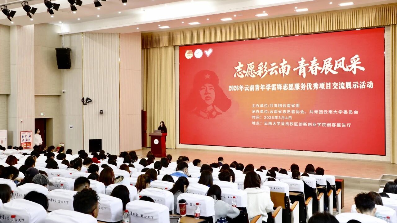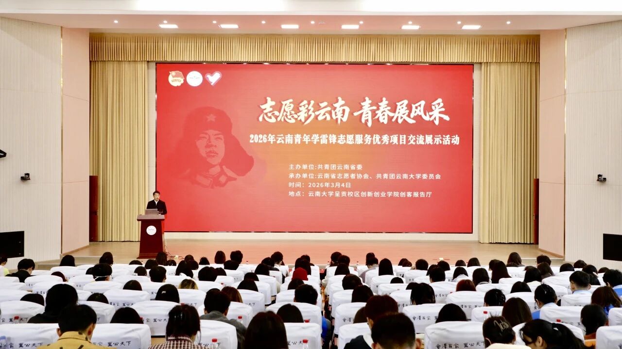2026年3月4日,在第63个学雷锋纪念日到来之际,由共青团云南省委主办,云南省志愿者协会、云南大学团委共同承办的“志愿彩云南・青春展风采”——2026年云南青年学雷锋志愿服务优秀项目交流展示活动在云南大学呈贡校区顺利举行。共青团云南省委副书记王珍珍出席活动并讲话,云南大学党委副书记张玮致辞。全省相关高校团组织负责人、第七届中国青年志愿服务项目大赛国赛获奖项目师生代表、高校志愿者代表等320余人参加活动。云南大学团委副书记(主持工作)朱丹主持活动。