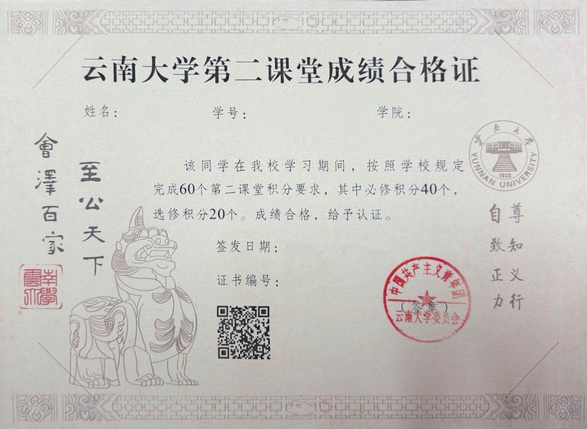 云南大学第二课堂成绩单