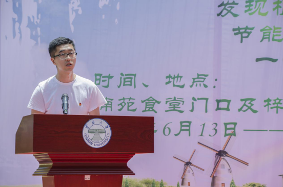 云南大学学生会副主席刘宜朋宣读环保节能倡议书。倡议云大同学树立环保节能意识,为建设美丽绿色云大贡献自己的一份力量。