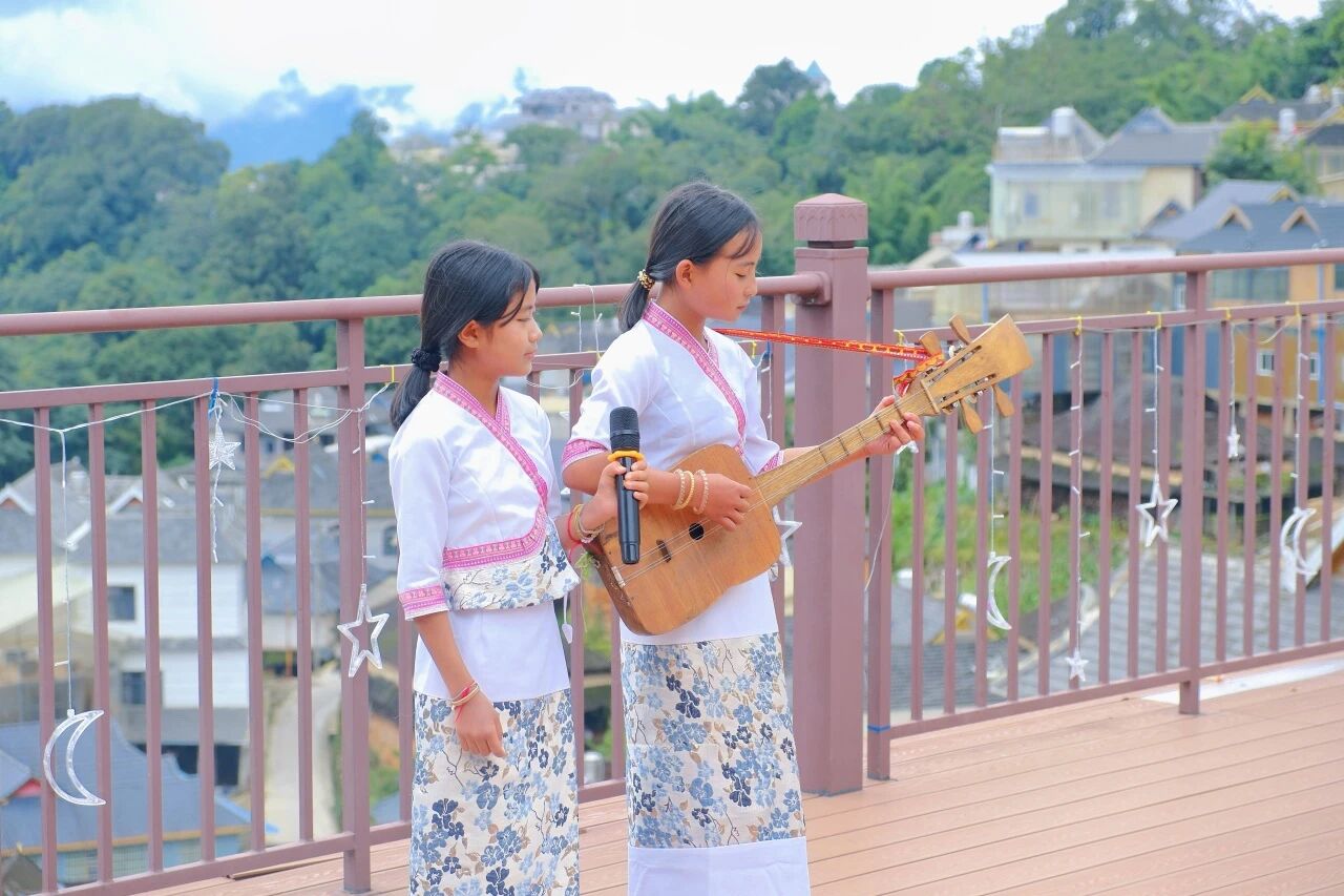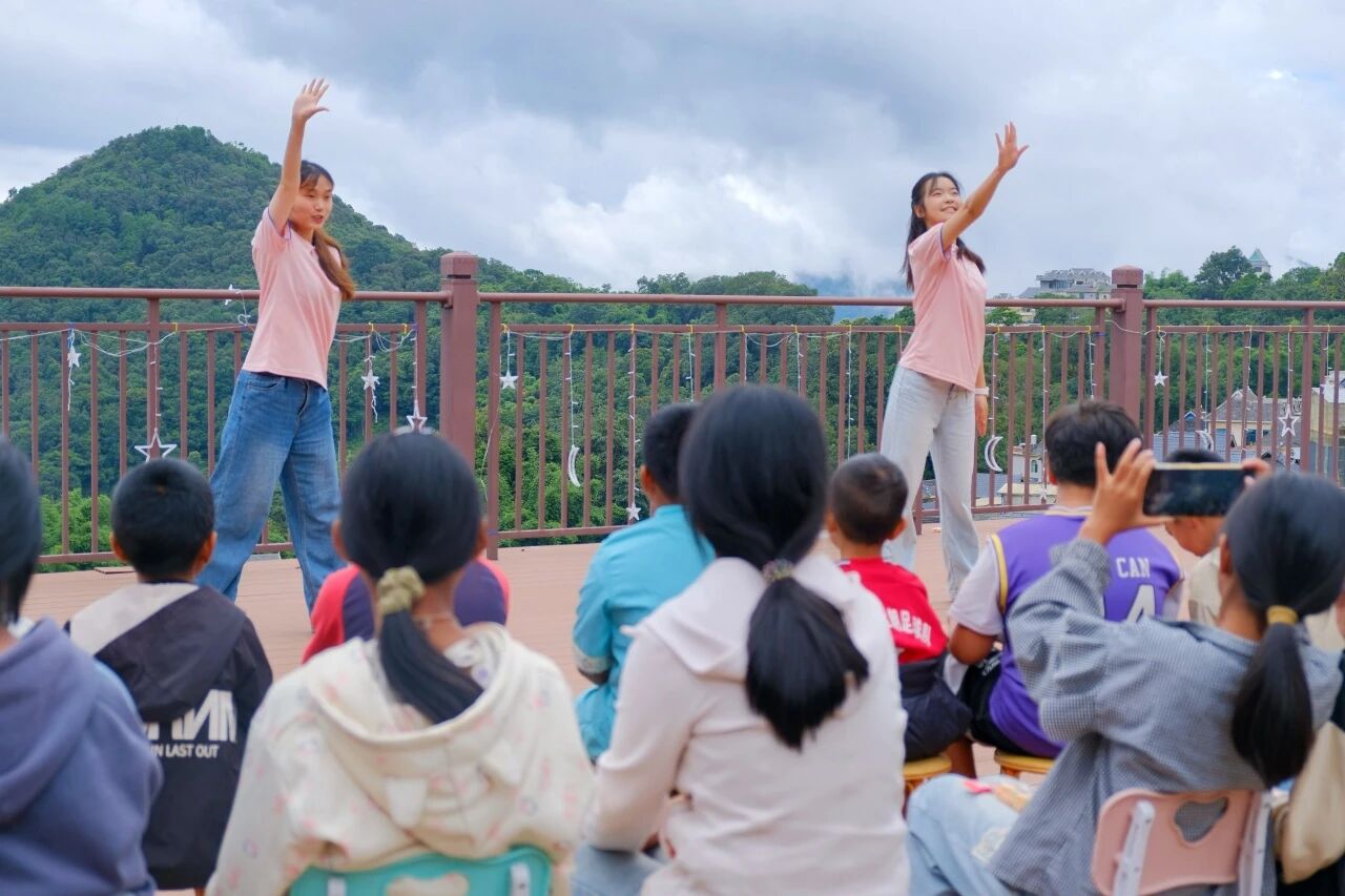 走进布朗族千年古寨章朗村,国家级非遗“布朗弹唱”的千年古韵成为实践团的美育“活教材”。成员们在近距离的欣赏学习中提升审美素养,更在传承人的解读中,认知悠悠琴声里的中华民族传统文化。在章朗村“童心港湾”,“大手拉小手 同心一起走”美育浸润活动温情开展。成员寸阳以云大校园文化为窗,引导边疆少年勇敢追梦。孩子们将梦想化为纸飞机放飞蓝天,稚嫩的笔迹满载对未来的憧憬。当《我和我的祖国》的旋律在山谷间悠扬回荡,童声与青年之声交相辉映,这一刻,美育超越了艺术启蒙本身,升华为连接个体生命与家国情怀的心灵纽带,在民族文化的沃土中,悄然种下文化自信的种子,生动诠释了美育在铸牢中华民族共同体意识中的重要作用。