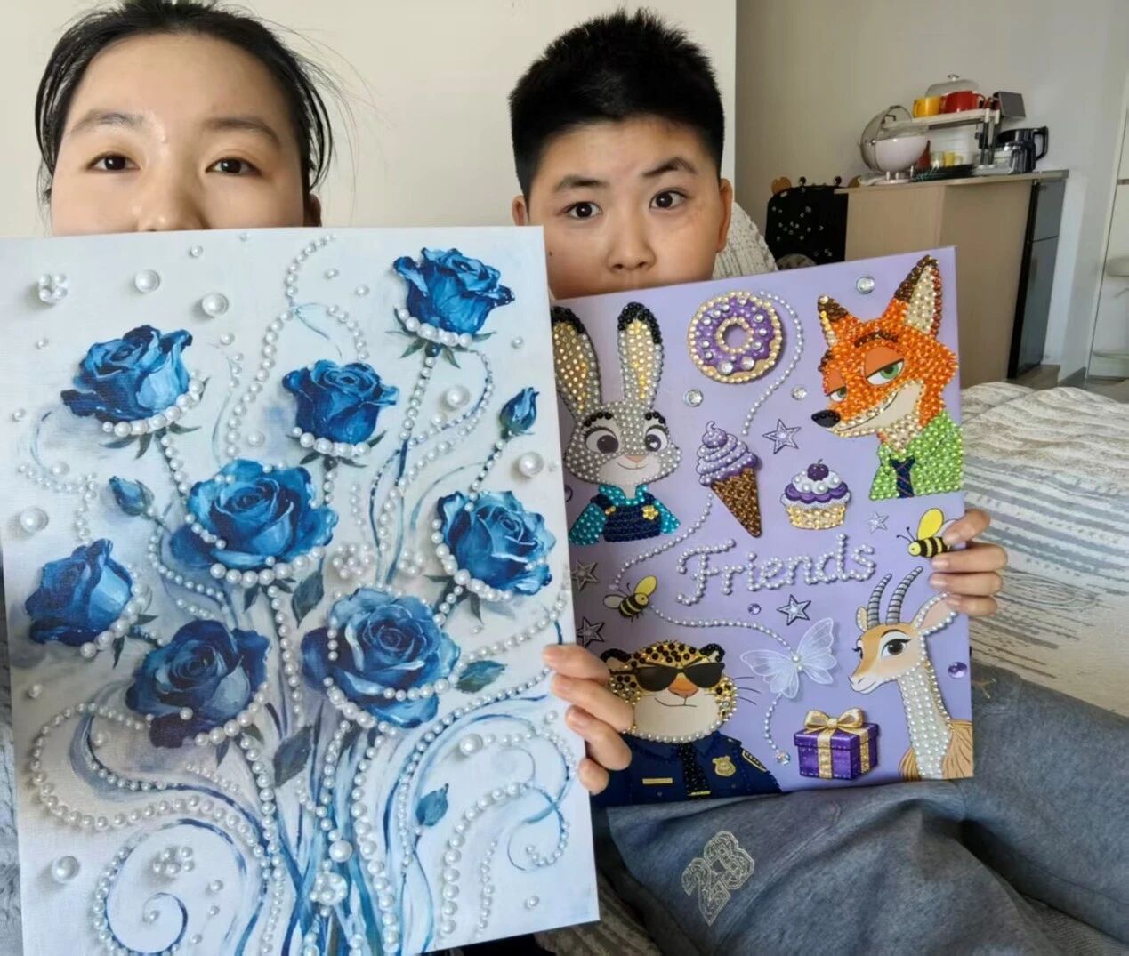 胡傲琦同学与对接中小学生展示画作