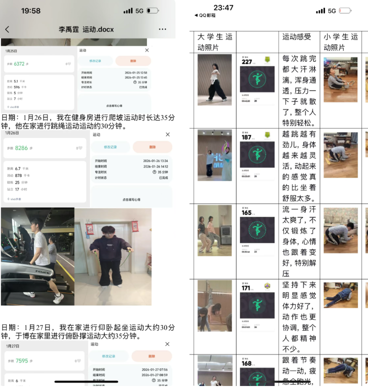 我和对接的学生共同开展了跳绳、羽毛球、户外徒步等多种形式的体育锻炼,坚持每天线下运动不少于30分钟。在陪伴与鼓励中,我不仅帮助学生养成了规律运动的习惯,也拉近了彼此距离,让运动成为我们共同的快乐时光。