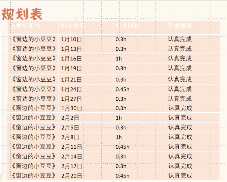 在制定阅读计划时,我考虑到儿童的阅读基础,选择了《钢铁是怎样炼成的》这本书,每三日打卡一次,每次时长不少于30分钟。作为陪伴者,我与孩子一起阅读,探索书中的世界,解答孩子读书时的困惑,进一步激发孩子的阅读兴趣。