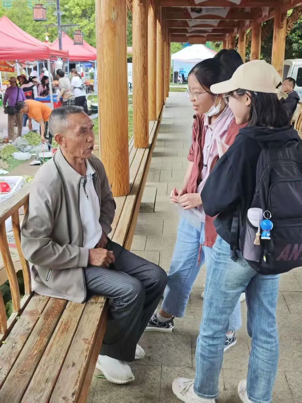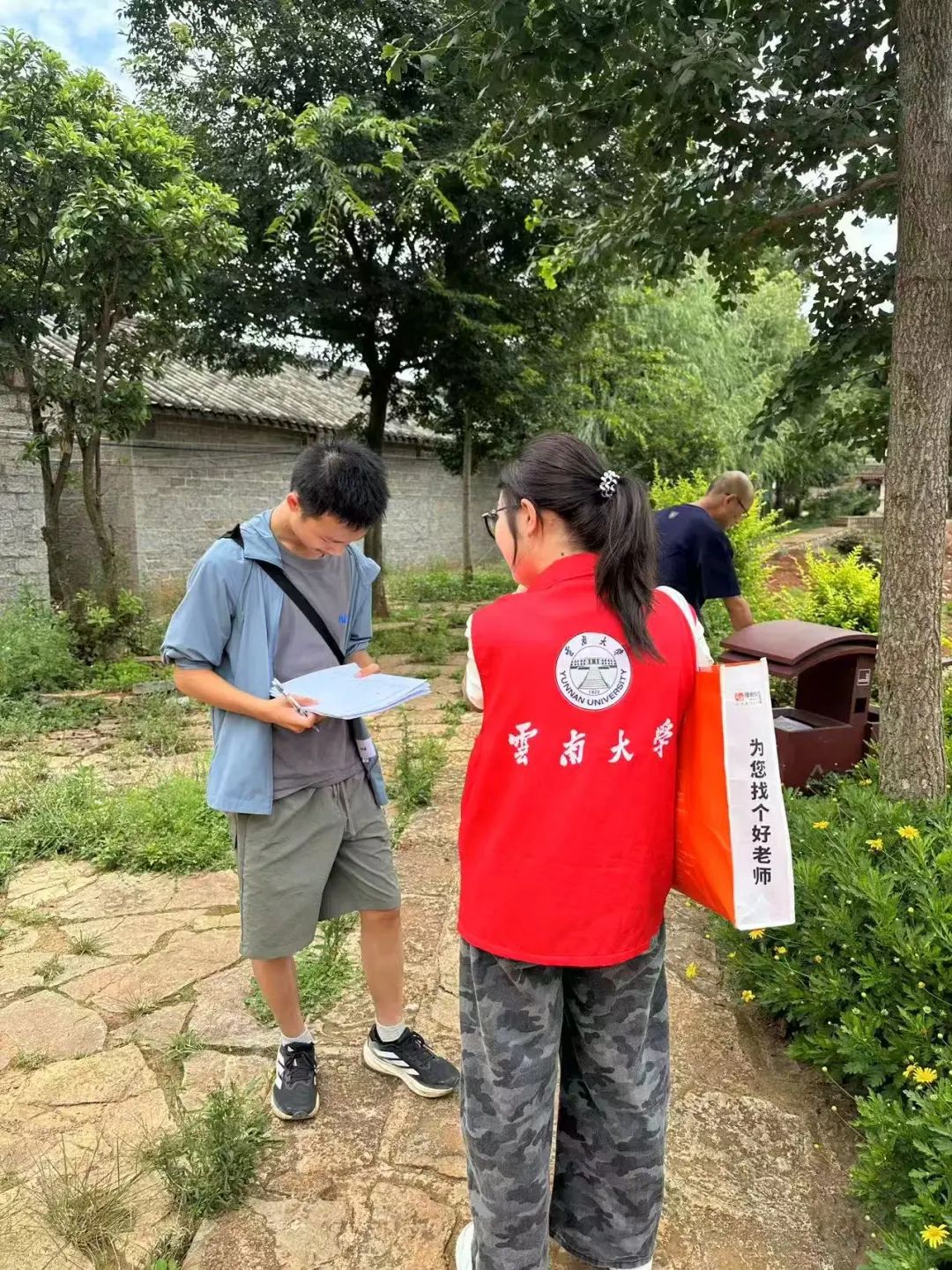 实践团成员向当地居民发放调查问卷