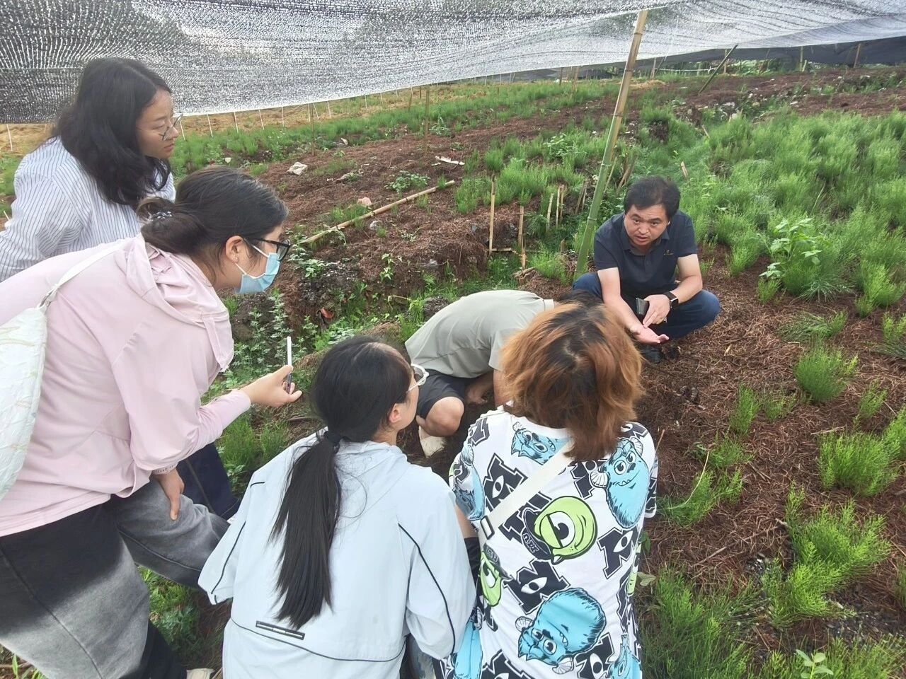 团队成员在天麻地里了解天麻具体生长情况