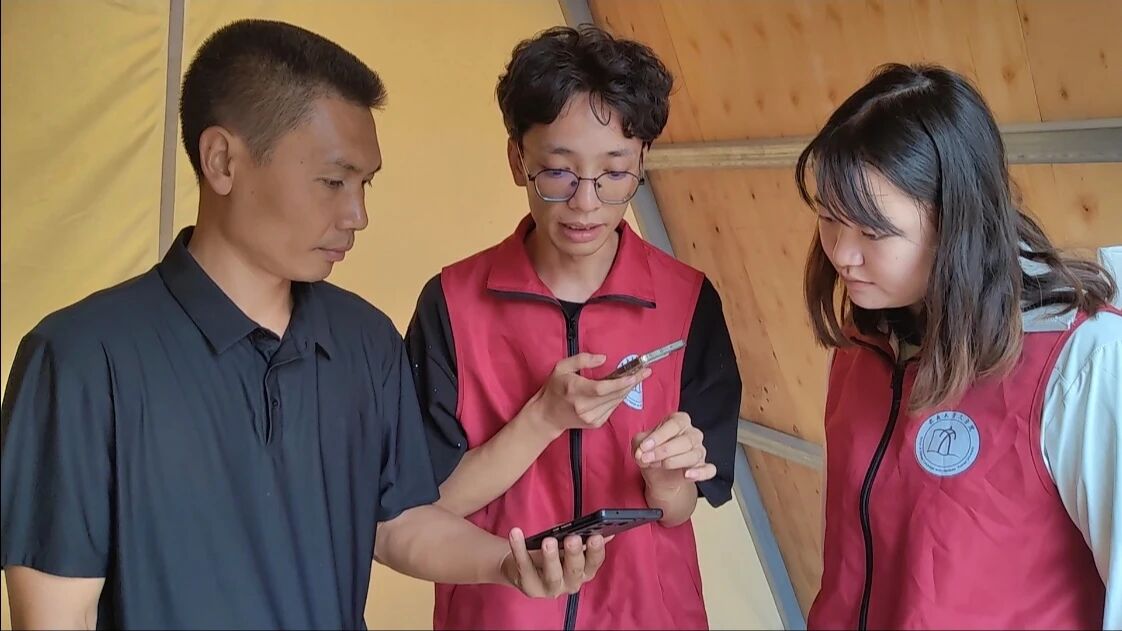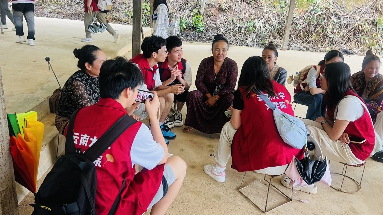 在曼列村小组,团队师生组织开展“‘语’你同行,共话家乡”活动,不仅向村民们科普普通话知识,更鼓励村民用新学的普通话介绍家乡特色。“希望通过你们的视频能让大家看到,我们曼列村很美,有茶叶、玉米,还有红糖!”参与活动的村民激动地说。