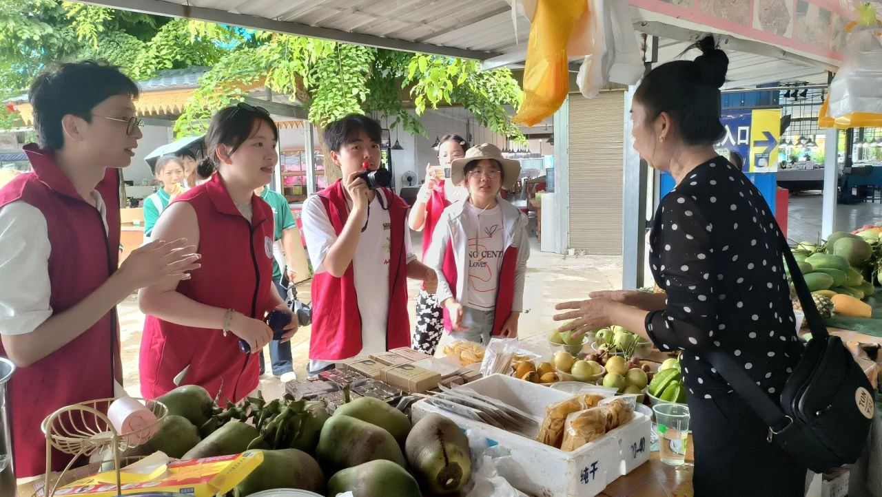 在勐景来景区,团队深入走访当地商户,一对一指导普通话销售技巧。卖热带水果的傣族奶奶高兴地说:“学了普通话招呼客人,我的水果摊生意比原来好多了!”团队成员还帮助商贩规范书写店铺招牌,现场教学接待用语。