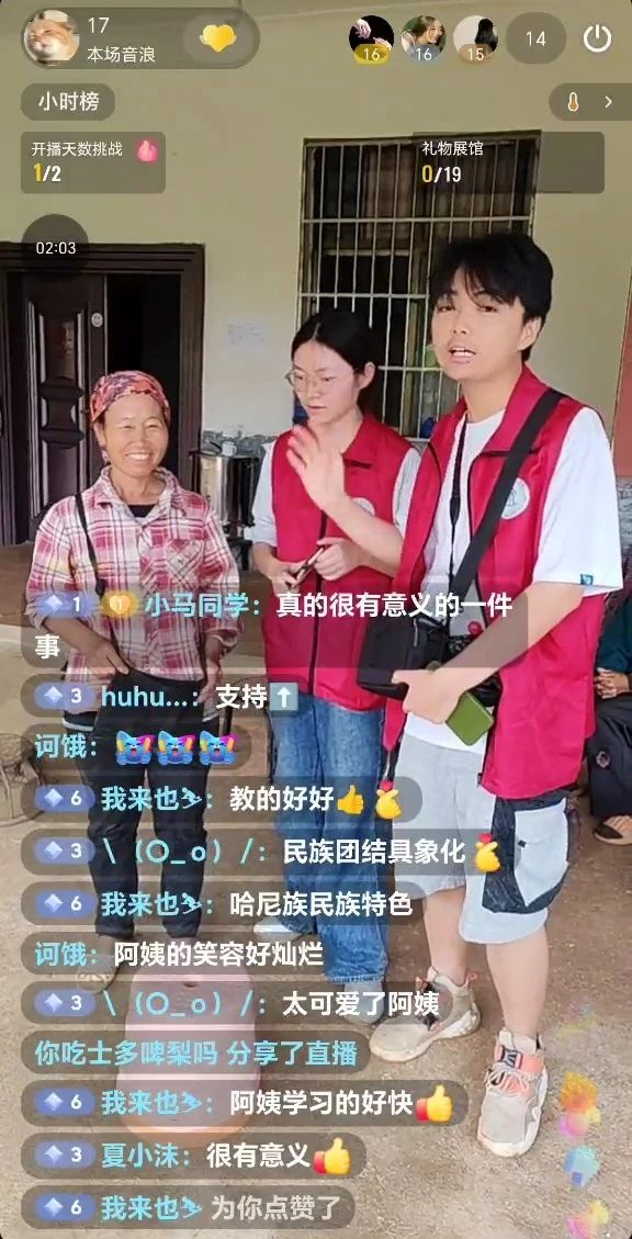 在三迈村回散咪小组,团队成员深入农户家中,开展直播话术培训,指导村民用普通话介绍水果、民族特色手工包,帮助村民掌握网络销售中的普通话应用技巧。直播屏幕成为连接村民与外界市场的窗口,普通话则成为打开市场大门的钥匙,让更多人了解到了回散咪小组的特色产品和民族文化。此外,团队创新开设“云端带货”实训课,帮助村民挖掘哈尼族文化特色,以语言文化赋能当地旅游特色村发展。