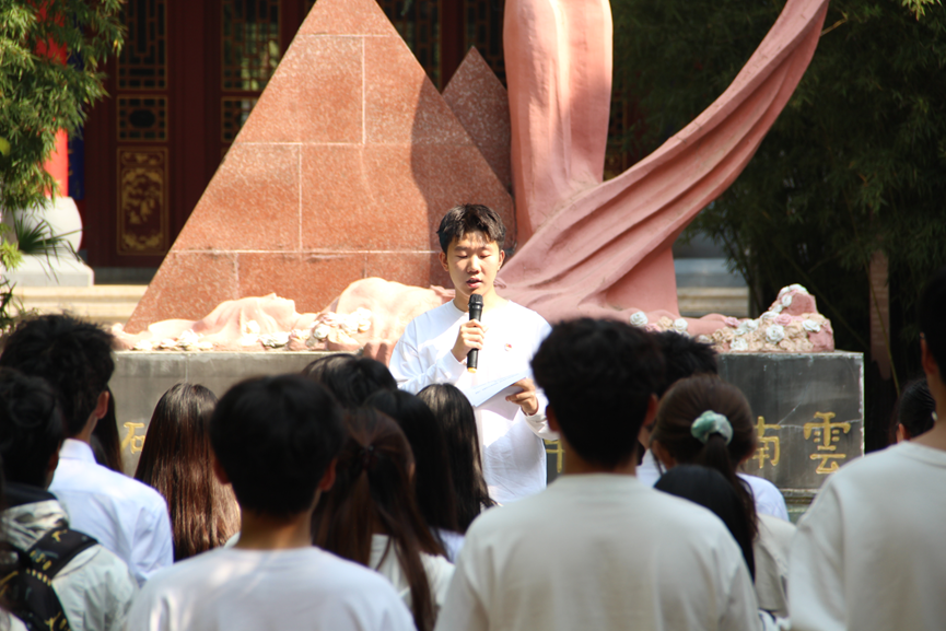 学生代表张子豪进行发言。他号召同学们牢记习近平总书记殷切嘱托,坚定不移听党话、跟党走,传承弘扬爱国奋斗精神,高唱新时代奋斗之歌,自觉做共产主义远大理想和中国特色社会主义共同理想的坚定信仰者和忠实实践者,为以中国式现代化全面推进强国建设、民族复兴伟业刻苦学习、挺膺担当。