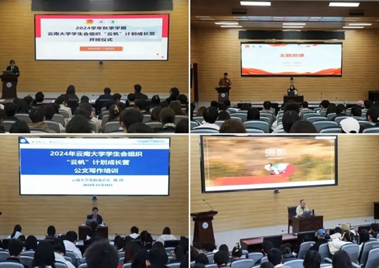 2024年11月,“云帆”学习计划启动仪式顺利开展。云南大学学生会、研究生会联合校团委宣传调研部和云南大学“青年讲师团”,邀请马克思主义学院教授、党政机关青年教师、云南网新闻中心老师、团委老师、上一届学生会组织骨干、青年同学典型等,组织校院两级学生会、研究生会成员集中参加政治理论讲座、改革精神研学、公文写作训练、网络宣传培训、校院联动交流、素质拓展活动、小组读书会等为期2周共计24个课时的集中学习活动。